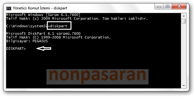 2- Komut istemcisine diskpart yazın ve Enter'a basın.